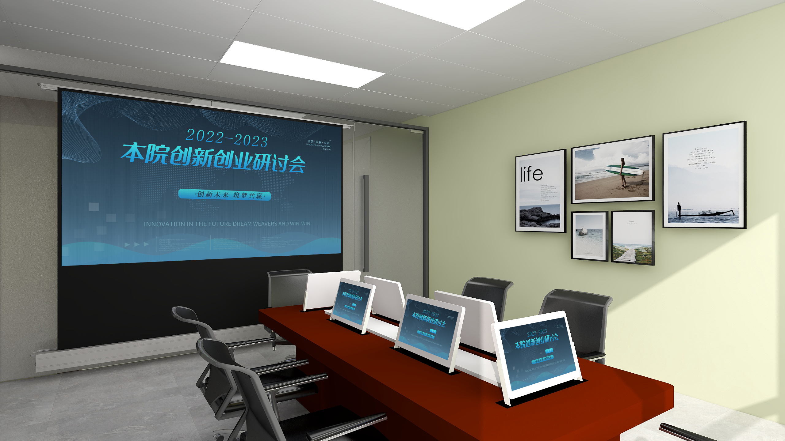 AI閱讀研討空間系統主要是解決閱讀過程中碰到的難題與問題,每一個閱讀者自身都具有不同的專長,而且每個人的知識文化是多元化的;當不同領域、不同文化的人聚集到一起的時候,在學習探討的過程中,一起分享各自碰到的難題與問題,不斷學習、不斷攻克,集合所有人的力量一起出謀劃策、共同進步。解學習難題、攻課題難關、是讀者學習社交的寶地,并提升到館率。 AI閱讀研討空間以六人坐或八人坐為標準,棱形座位或者長條形樣式,以六個方向六片屏或八片屏為主,每個座位對應一片觸摸顯示屏,每個觸摸顯示屏運行一套《AI閱讀研討空間管理系統》,每個屏幕上一半顯示的自己的難題,另一半顯示的是大家的難題和目前討論到的流程位置。